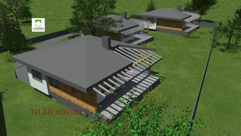 . Имотът е на три нива: сутерен с гаражи за две коли и помощни помешения-площ 120 м2, основен етаж на кота-0 състоящ се от: голям хол с дневна и кухненски бокс, три спални с три бани, голяма тераса пред южната страна на къщата с площ 120м2. Таванско помещение с нормална височина за живеене с площ 120м2. Общо цялата използваема площ ще е 360 м2. Към къщата се полага и самостоятелен двор от 850 кв.м. Къщите са ориентирани изцяло на юг, с изглед към Витоша.