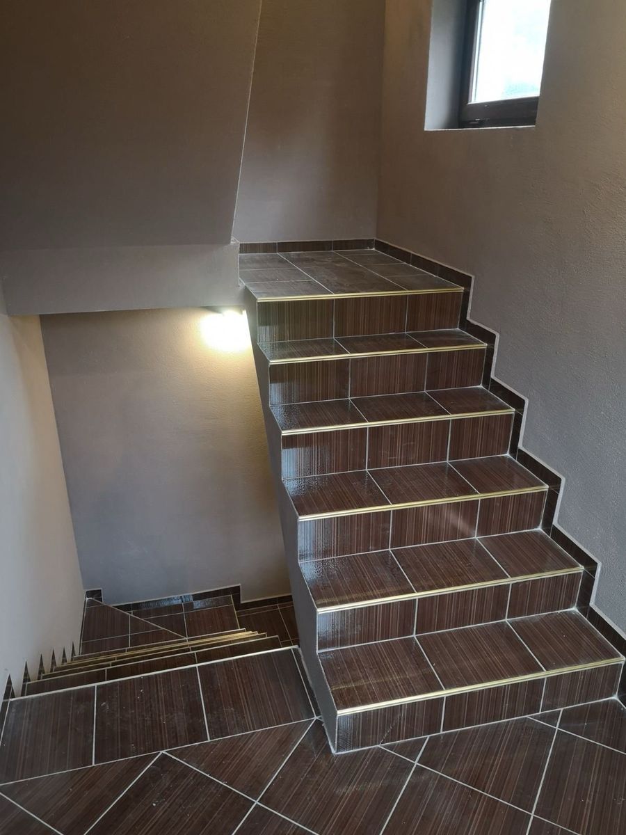 Стълбището между етажите е просторно и удобно, като има място за допълнителен багаж на всеки етаж.